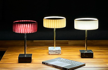 Teia Lamp is manufactured one by one in Spain, only with noble materials: wood, carved marble, silk, organza and cotton. Available in three sizes: M, L (both are designed for a dining table as their height will not prevent you from see the interlocutor seated in front of you) and the XL imagined for a side table.