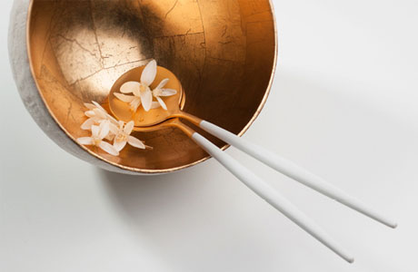 Available in sterling silver and cromo-nickel 18/10, silver-plated. Gilt.